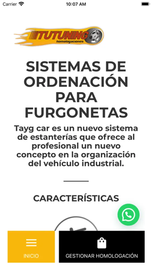 Tayg Car App es la aplicación necesaria para tramitar la homologación de los sistemas de ordenación para furgonetas Tayg Car. A través de la aplicación, los clientes que hayan adquirido e instalado sistemas de estanterías para profesionales Tayg Car en sus vehículos podrán gestionar con la entidad responsable de la homologación (Tutuning Homologaciones) todo el proceso de homologación necesario para poder circular en España.