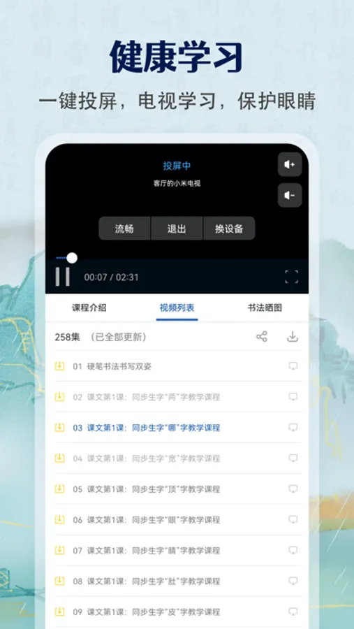 内容包含:硬笔书法基础入门课程,专题提升课程,1-6年级同步写字课。