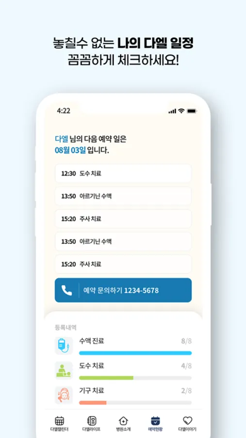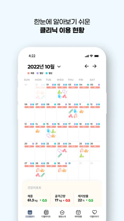 - 클리닉 이용 현황을 한눈에 확인할 수 있습니다.