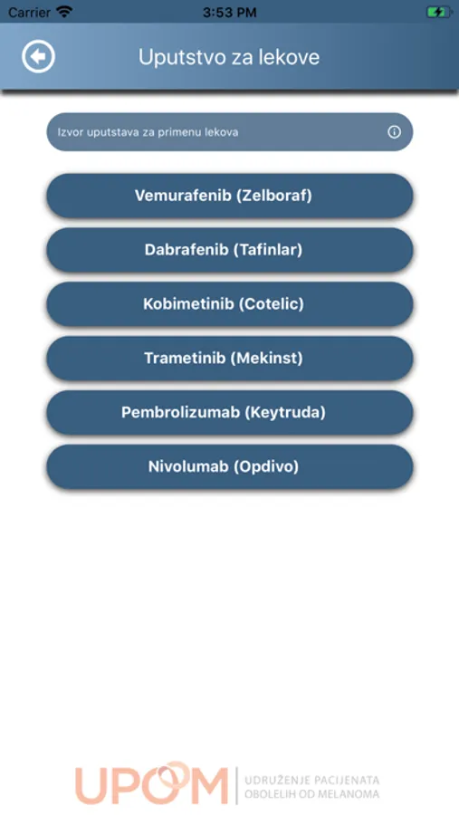 Aplikacija MyMelanoma je pripremljena od strane Udruženja pacijenata obolelih od melanoma i namenjena je svim pacijentima obolelim od melanoma. Uz pomoć ove aplikacije oboleli će moći da beleže i čuvaju podatke o važnim trenucima u toku svog lečenja kao i da u toku kontrole kod svog lekara mogu lakše i bolje da opišu aktivnost bolesti između dve kontrole.