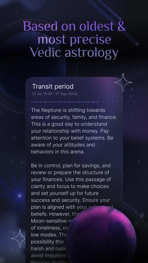Astro Coach — a new personalized astrology application that gives you an in-depth understanding of your personality, helps you plan your future with the help of stars and planets. It shows you how planets affect your life and psychology, points out your potential and the areas where you can realize your full capacity.