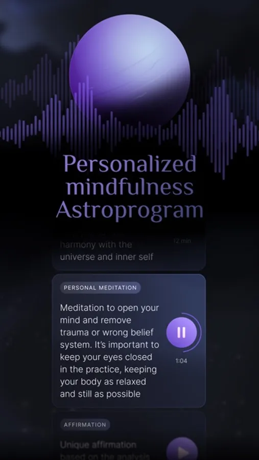 AstroProgram: a meditation, mantra, and affirmation in an audio format based on your Astro Profile. This program will help you cope with fears and anxiety, restore energy and gain confidence in your abilities. Choose your level of program and track your progress.