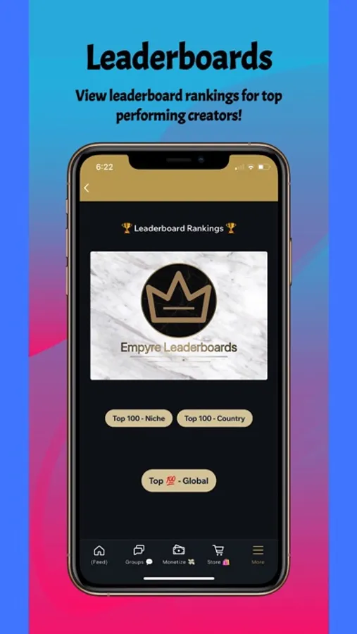 Top the Empyre leaderboards for reaching a high level of views, likes, comments, retweets, saves/favorites, highest earnings, most sales driven, most referred members, best selling product/service, and more!
