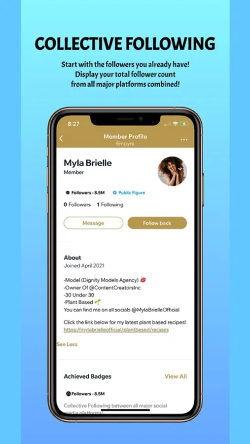 Display your combined follower count across all major social media platforms on your profile for everybody to see. Start with the followers you already have!