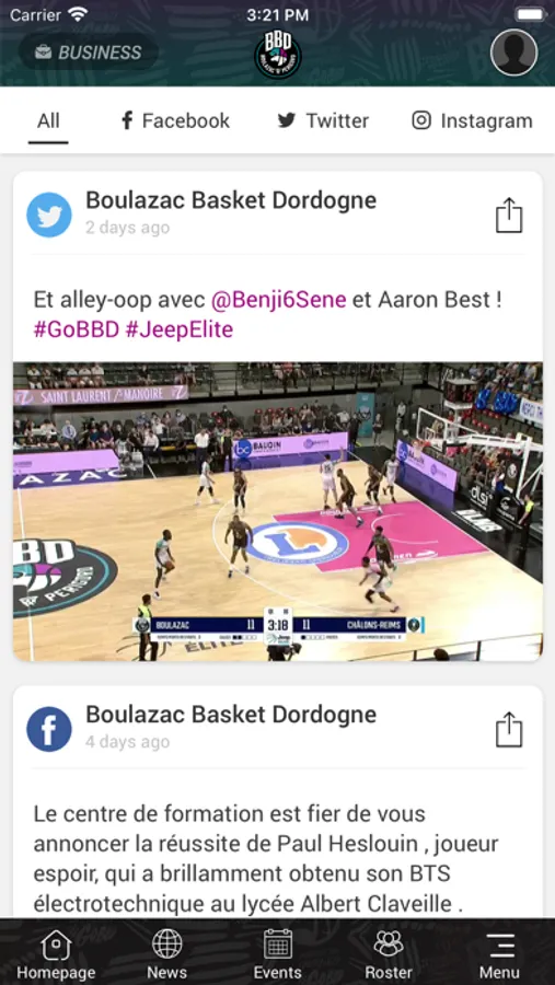 - Les posts sociaux, TOUS accessibles au meme endroit (Facebook, Twitter)