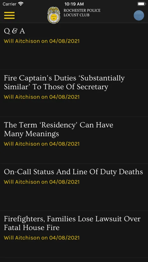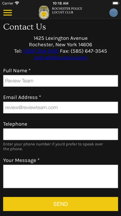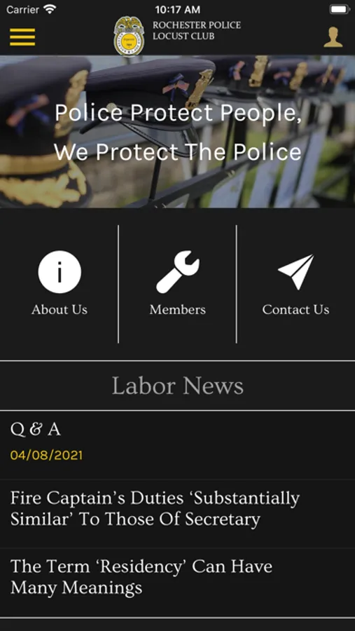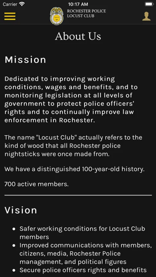 The app is intended to be a communications tool for the Rochester Police Locust Club, its members and the people they serve. To that end, the app includes: