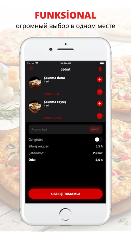 Sevdiyiniz yeməkləri bizdən sifariş edin, xidmətimizin keyfiyyətindən məmnun qalacaqsınız. Ən yaxşı aşpazları işə götürürük və kuryerlər sizi nəzakət və sürətli çatdırılma ilə sevindirəcəkdir.