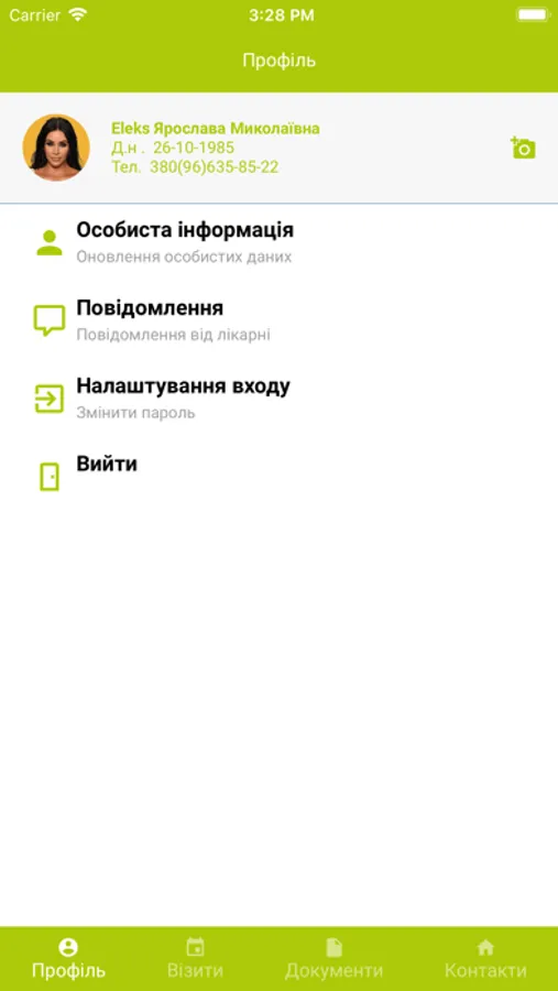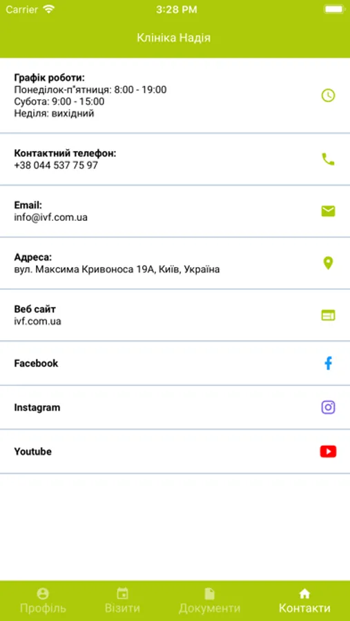 Особистий кабінет паціентів клініки репродуктивної медицини "Надія"