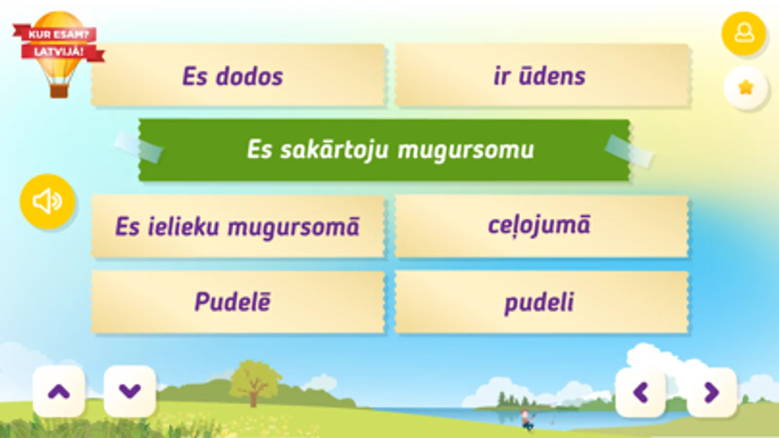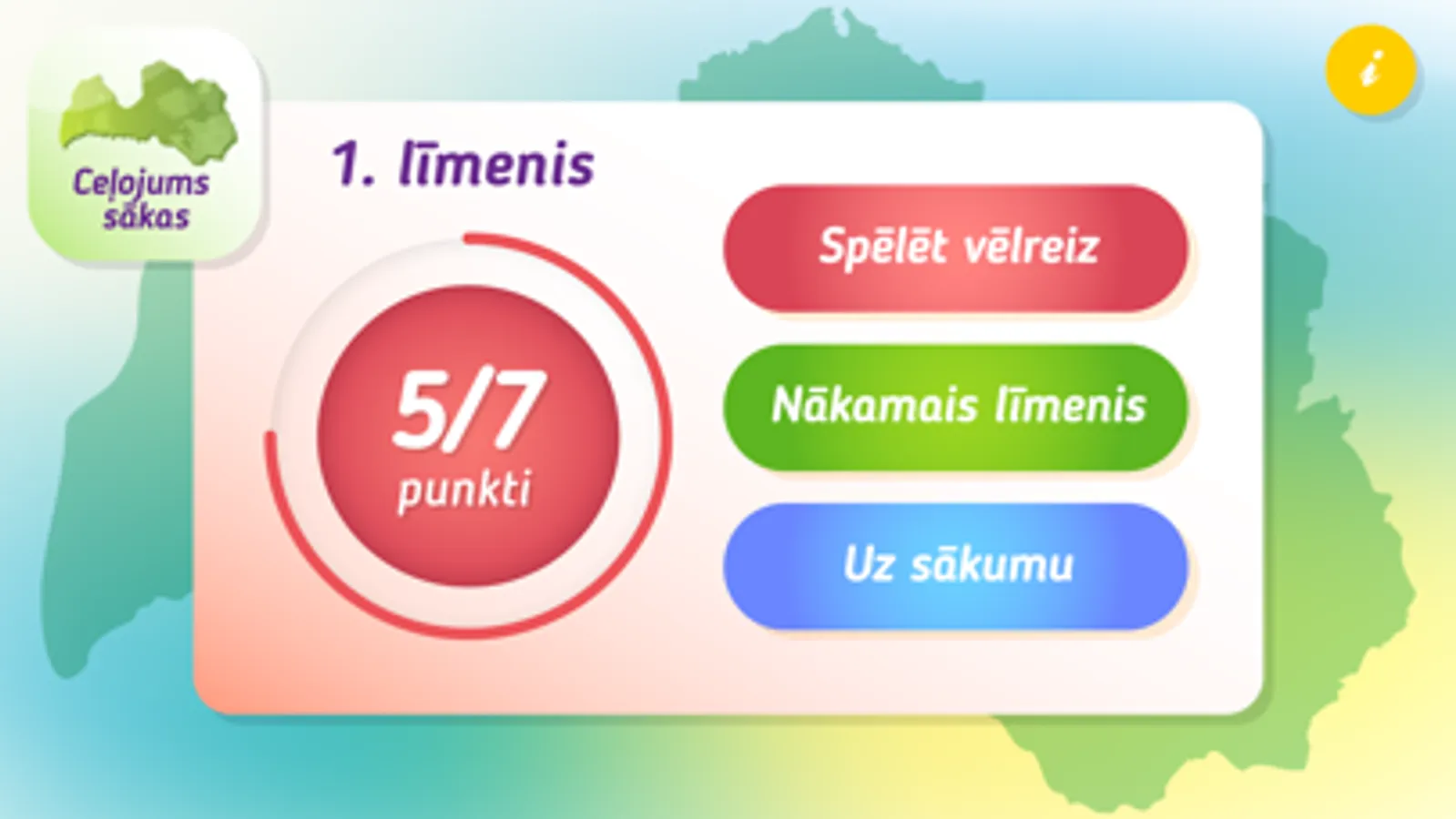 Kā pirmais ir jāizspēlē temats "Ceļojums sākas", iegūstot talismanu - Latvijas karti. Kad tas būs izspēlēts, tiks atvērti citi temati, kurus iespējams spēlēt jauktā secībā pēc izvēles, ikreiz pārliecinoties par sasniegto progresu rezultātu lapā.