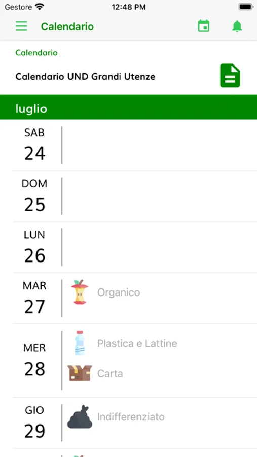 l’utente può accedere e visualizzare il calendario delle raccolte previste nel Comune di riferimento
