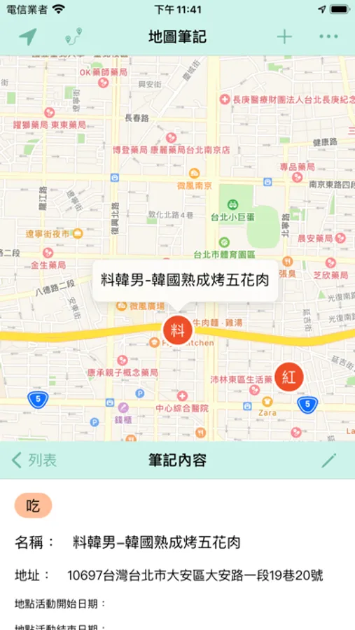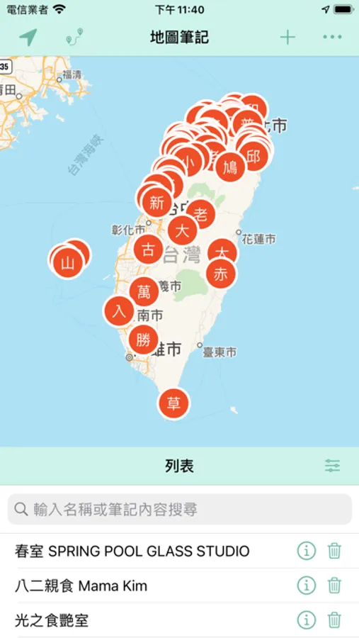 寫上自己的筆記、設定好該筆記分類,並且直覺性的顯示在地圖上