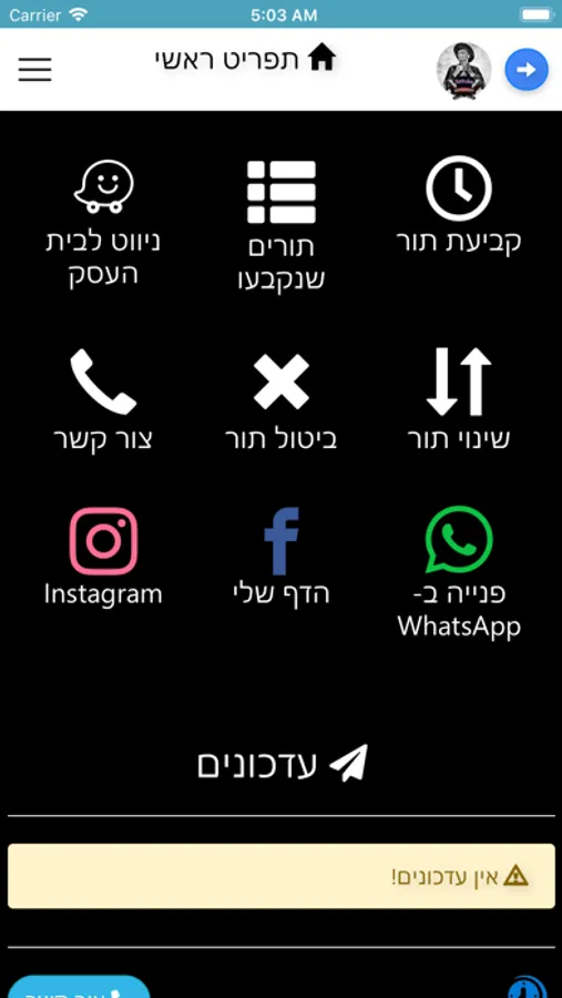 באפליקציה אפשר לקבוע תור, לנווט באמצעות Waze ולפנות אליי באמצעות WhatsApp.