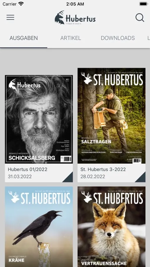 Die HUBERTUS-App bietet zahlreiche praktische Features, wie einen komfortablen Lesemodus, exklusive Videoclips, eine Volltextsuche, ein Archiv usw.