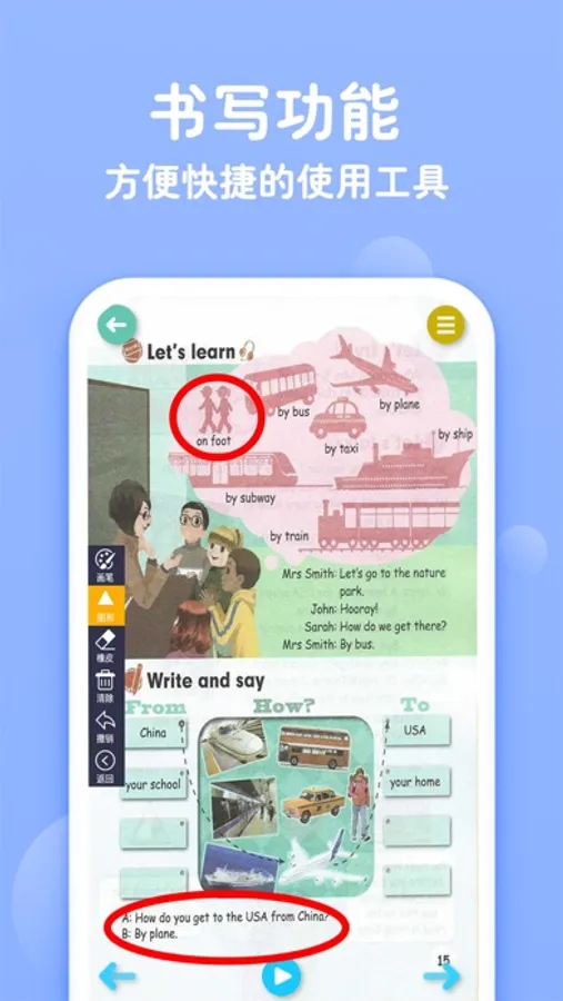 【4】画笔功能,全屏涂鸦让学习更加的有趣让学习更加高效率。完全同步最新发行教材,绝无缺漏页现象。