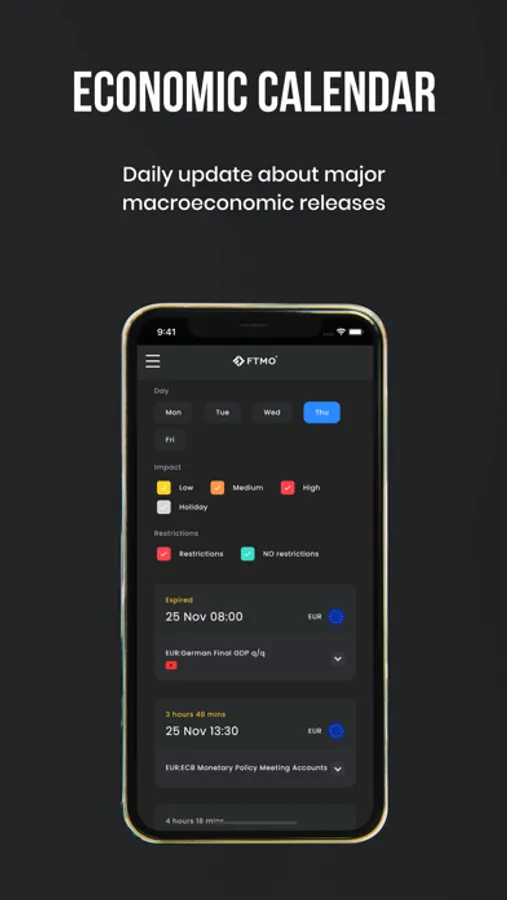 We packed our ultimate trading apps into one mobile application. A lot of traders keep sending us positive feedback for our web applications, saying it helps them with risk and money management, improving trading strategies thanks to our Equity Simulator, Trading Journal and Account MetriX. You can easily monitor your Trading Objectives in the Account MetriX while staying focused on trading. Macroeconomic releases can no longer catch you by surprise as you have the Economic calendar right on the mobile phone.