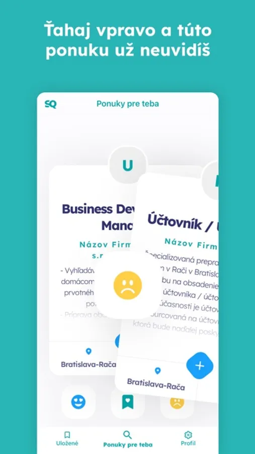 Ak sa Ti ponúkaná práca páčiť nebude, posunieš doprava alebo stalčíš žltého smajlíka.