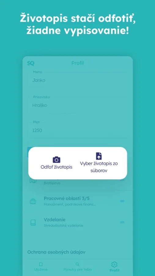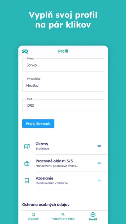 • Keď sa Ti ponuka nebude páčiť a posunieš kartu doprava, nikto sa to nedozvie. Tvoj životopis nikam nepošleme.