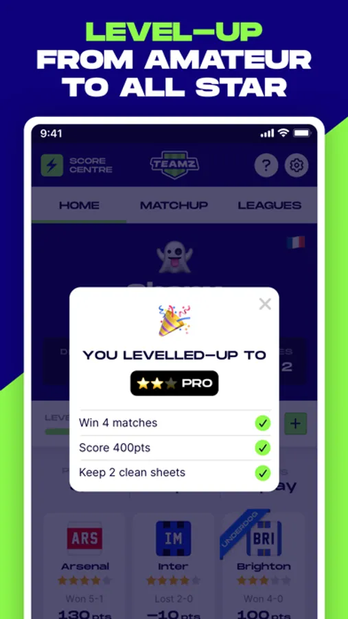 • Level-up: complete challenges and rise from Amateur to Allstar