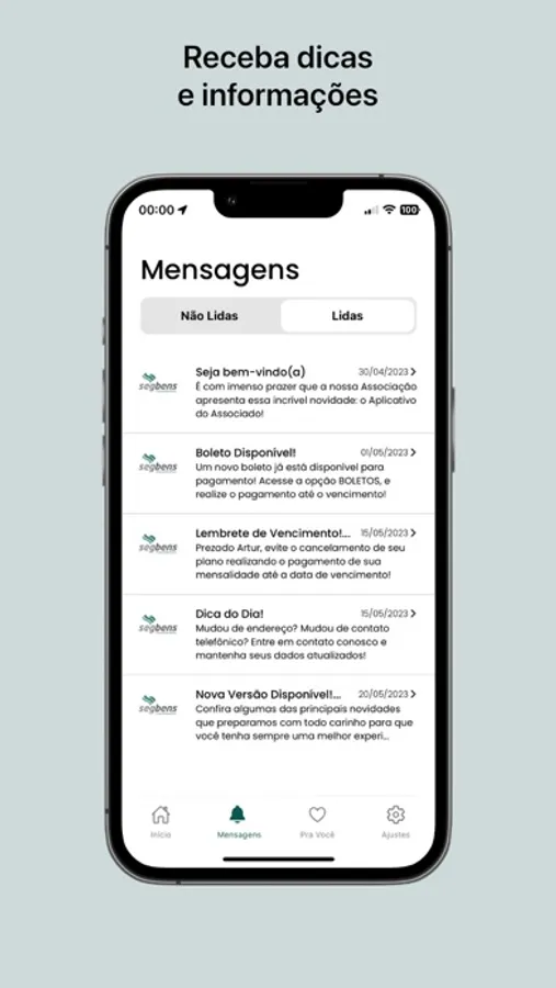 Com o Segbens Associados você poderá visualizar suas Filiações, Dados de seu Veículo, Plano, Boletos, Eventos, receber dicas e informações, consultar seu Regulamento Associativo e ainda solicitar ajuda sempre que precisar! Tudo isso ao alcance de um toque!