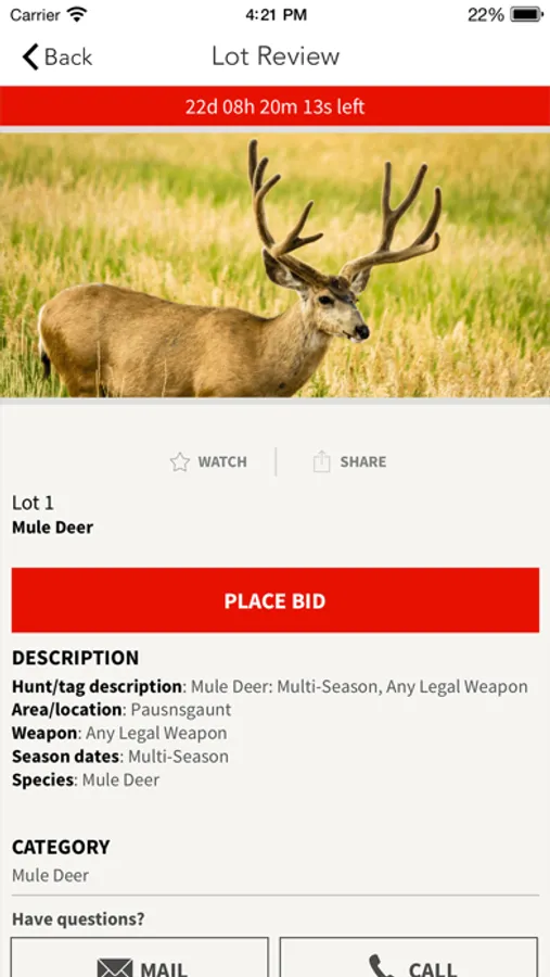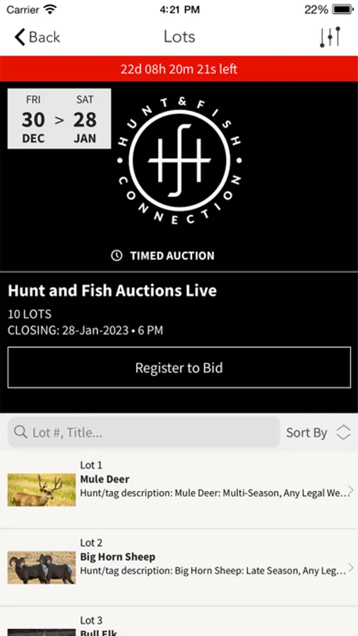 Your #1 online Hunting and Fishing Auction App. Place bids on a hunt, tag, or Fishing trip of a lifetime. Hunts and Fishing trips listed will come from approved Outfitters, Landowners and Conservation groups. Also, receive awesome discounts on all your hunting and fishing gear.