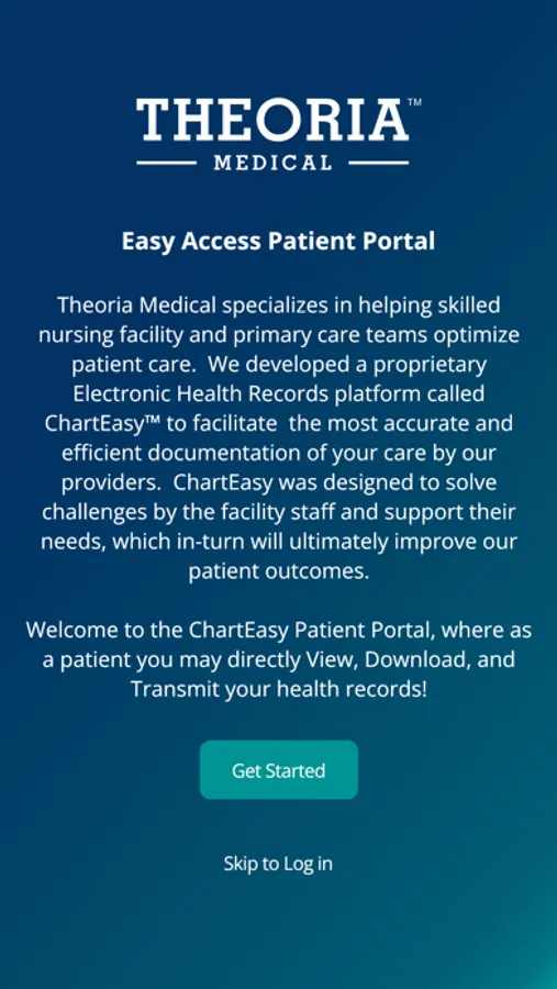 Welcome to the ChartEasy™ Patient Portal, where as a patient you may directly view, download, and transmit your health records! Theoria Medical specializes in helping skilled nursing facility and primary care teams optimize patient care. We developed a proprietary electronic health records platform called ChartEasy™ to facilitate the most accurate and efficient documentation of your care by our providers.