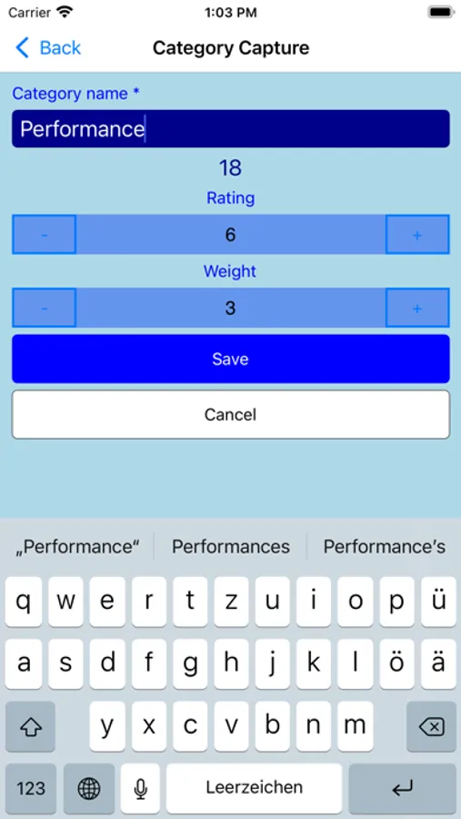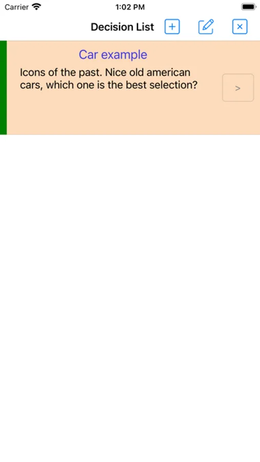 Decider is an interesting app because you can evaluate decisions very precisely and generate the most optimal ones. You can navigate from top to bottom, i.e. from general to individual, like the decision list to its decision objects and from there to the categories and back. Categories are very important such as design, ecology and performance in a car. You can rate which criteria mean more with a rating from 1 to 4, e.g. design before performance.