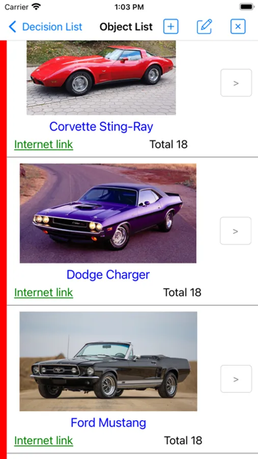 Then you can set a grade from 1 to 8 for a certain object (car). This then determines the order of the objects, i.e. the best decision at the top.