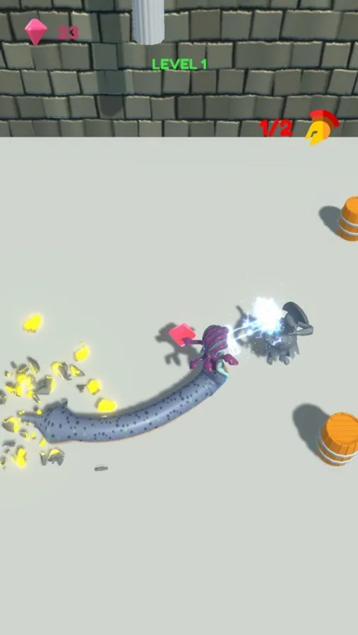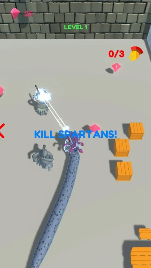 Control the Medusa to turn Spartans to stone. Then wrap around and explode them with your tail. Make your way to the chest!