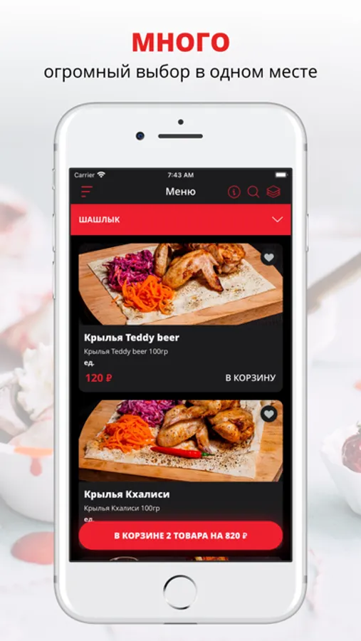 Будь то свиной шашлык, необычная шаурма, аппетитные крылышки или сочные шампиньоны в фирменном соусе.
