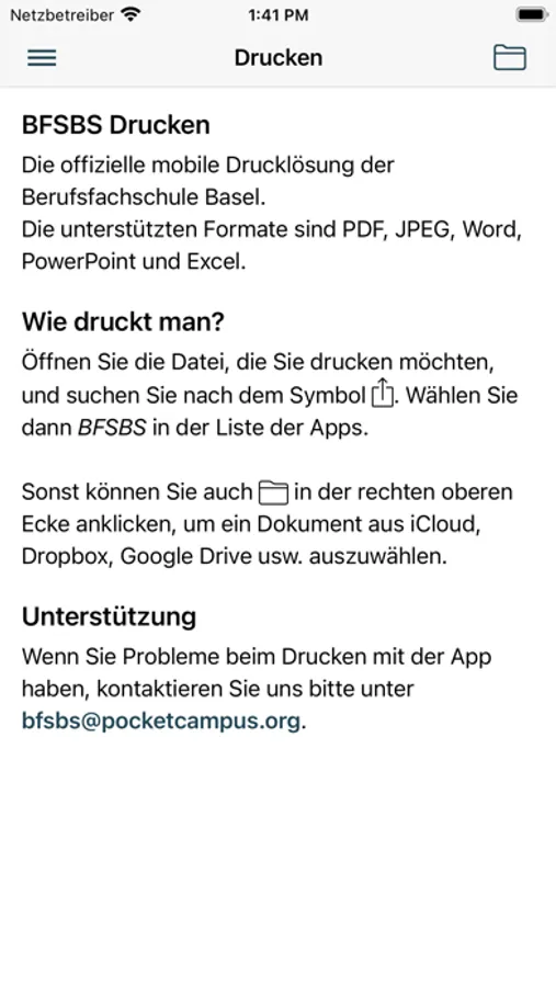 Drucken Sie Dokumente bei BFS Basel von Ihrem mobilen Gerät aus, finden Sie Anleitungen zu E-Mail, Teams, und mehr.