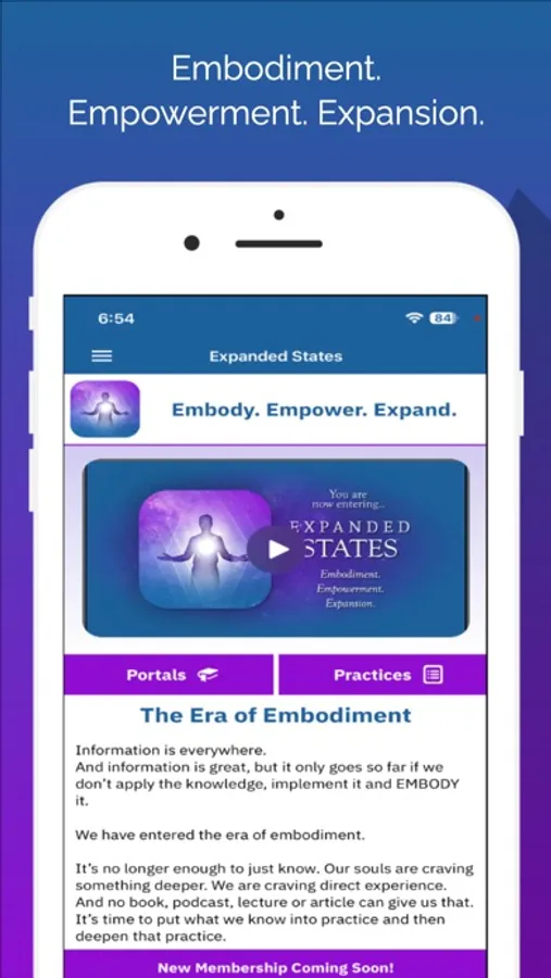 This app is here to support you on your journey of expansion. The practices in this app are here to empower you and remind you of your ever expansive nature. With guided embodiment sessions like breathwork, meditation, kundalini yoga, somatics and more, you will be feeling mentally empowered and energetically expansive in no time! The only question that remains is... are YOU ready to enter EXPANDED STATES?