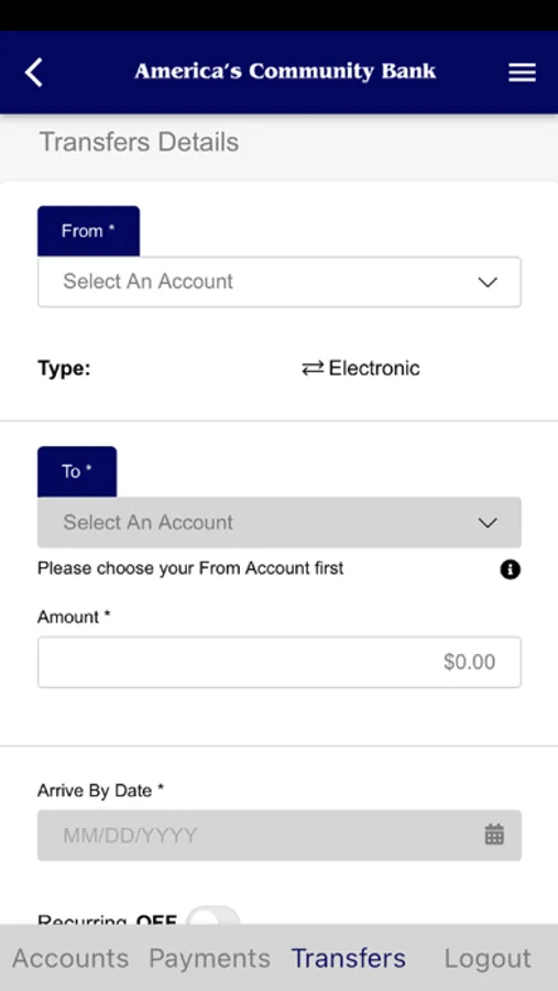 Mobile banking by America's Community Bank allows you to bank on the go. It's free to download and offers quick access for managing your bank accounts. Check your balances, transfer money with just a touch. Our app is fast, secure, and free. Use your current Internet Banking login information to start Mobile Banking today.