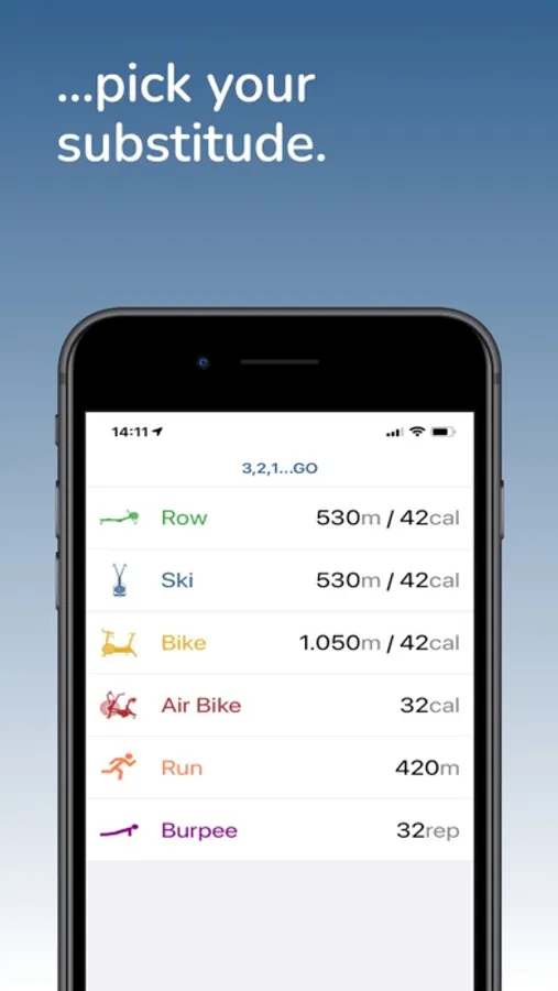 No Rower? No Skierg? No Air Bike? ... no problem! Pick your favored movement substitution in seconds and 3...2...1...go!