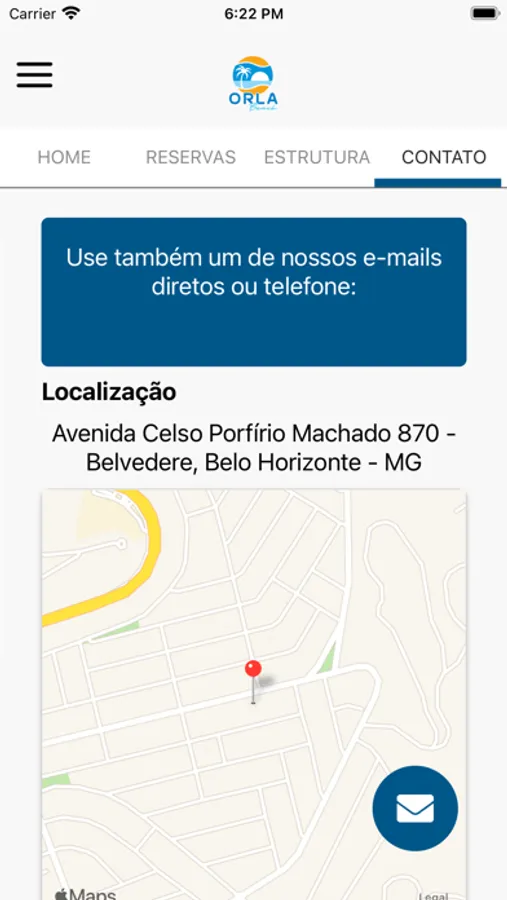 Confira pelo aplicativo nossas informações de estrutura, localização e contato com o centro esportivo.