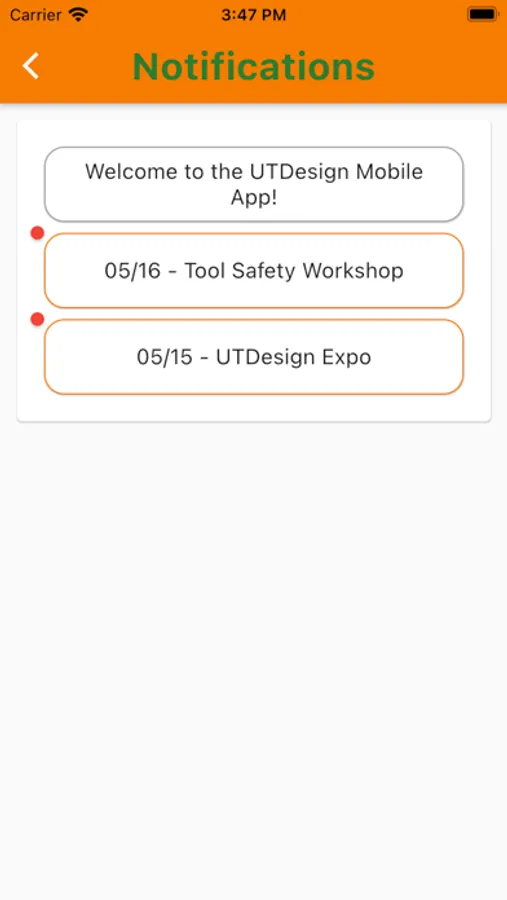 The UTDesign Phone Application is a mobile provision of commonly used resources by UTDesign students. The purpose of this is to enable greater access and convenience to these student tools, with a goal of increasing productivity. An added feature that the app boasts are push notifications, which allow the user to be alerted of future events and deadlines.