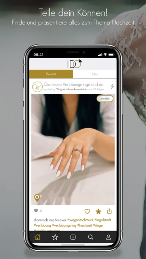 IDO bringt verliebte Paare mit Hochzeitsprofis zusammen. Damit ist IDO weit mehr als eine Social Media App: IDO dient als digitales Moodboard für Menschen, die ihre Hochzeit organisieren und ist ein Schaufenster für alle, die Dienstleistungen und Fabrikate rund ums Heiraten anbieten. Kurzum: IDO ist die Plattform für Hochzeits-Enthusiasten.