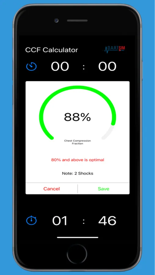 As you know Interruptions in chest compressions during cardiopulmonary resuscitation (CPR) can decrease the survival rate in out of hospital cardiac arrest. Perfusion stops when CPR stops. The chest compression fraction (CCF) is the amount of time spent administering chest compressions during cardiac arrest. If you can obtain a CCF above 80% you can dramatically increase the survival rate. The CCF Calculator works in conjunction with a compression rate of at least 100/min, assuring adequate compression depth and recoil. Thats why we also included a metronome for 100 and 120 beats per minute.