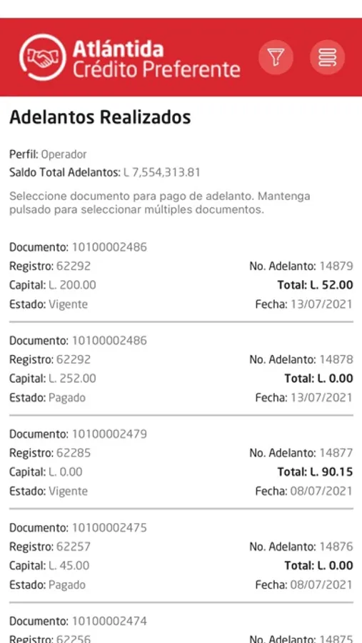 Es una APP diseñada para gestionar de forma rápida, segura y desde cualquier lugar a través de un Smartphone, los anticipos y pagos de las facturas de los clientes compradores del segmento de Banca Corporativa. Se ingresa con el usuario y clave de Atlántida Online Empresarial asignado a la empresa