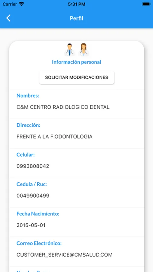 -Para obtener una cuenta en nuestra app el doctor debe contactarse con el centro radiólogo C&M para solicitar el ingreso ya que no podemos darle acceso al público en general por políticas de la empresa y más que todo para asegurarnos que el usuario que usará nuestra app es un odontólogo.