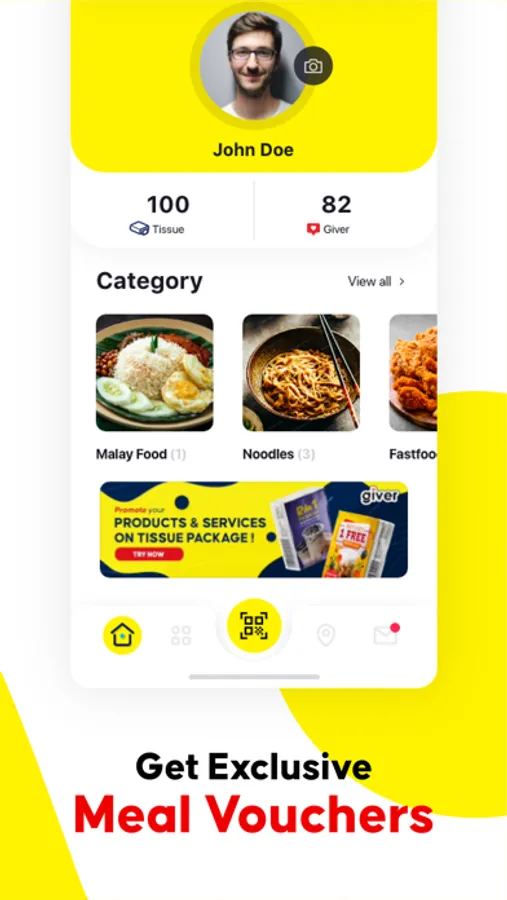 An app which can get the free tissues at every cafe. You can scan the machine qr code and take a tissues when u finish watching the advertising.