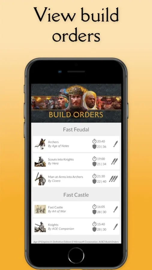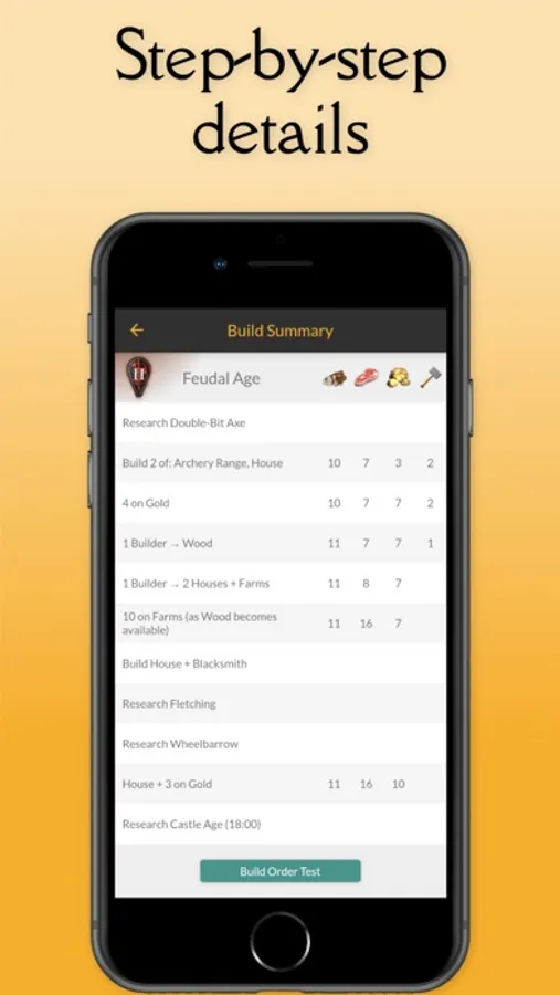 Detailed summaries include the number of villagers and build order steps in different ages.
