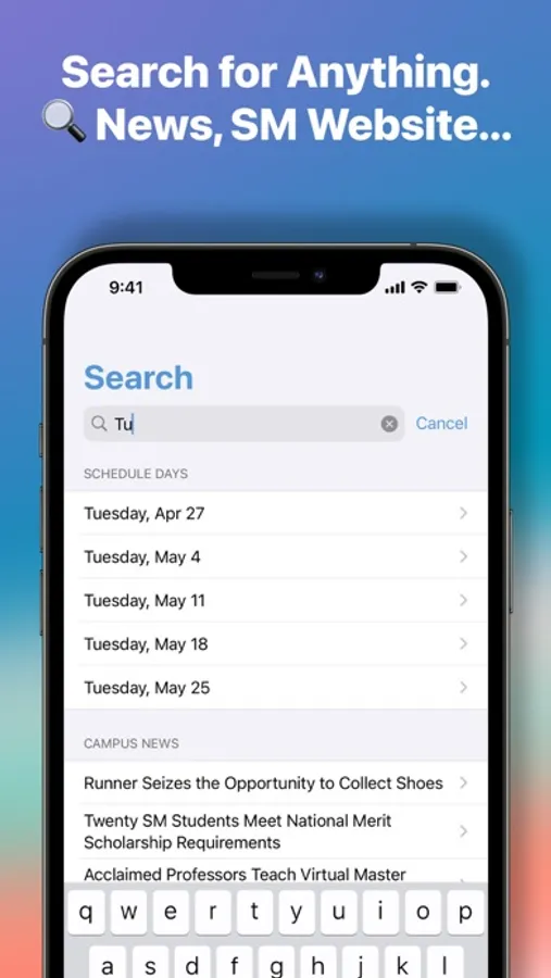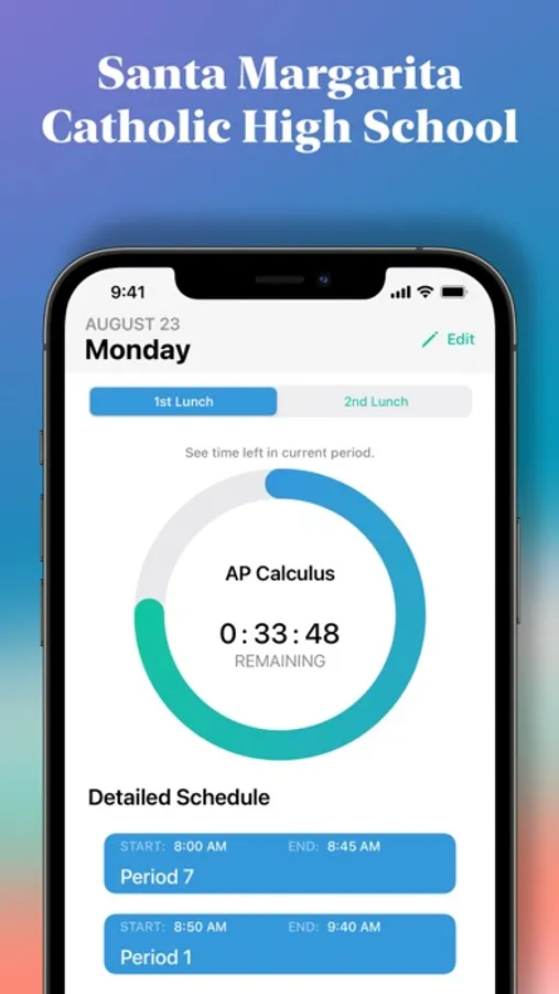 Have trouble keeping up with Santa Margarita Catholic HS's changing schedule? Want to easily check you grades? Want the latest campus news updates? Need to see the school year calendar? Wish to see exactly how many minutes is left for the current class? SMHS is a powerful and beautiful app that allows users to view SMHS's class schedule. The SMHS app is designed with Apple Human Design Guidelines in mind, presenting native Apple user interface with gorgeous color details. It is made by an SMHS student, for SMHS students.