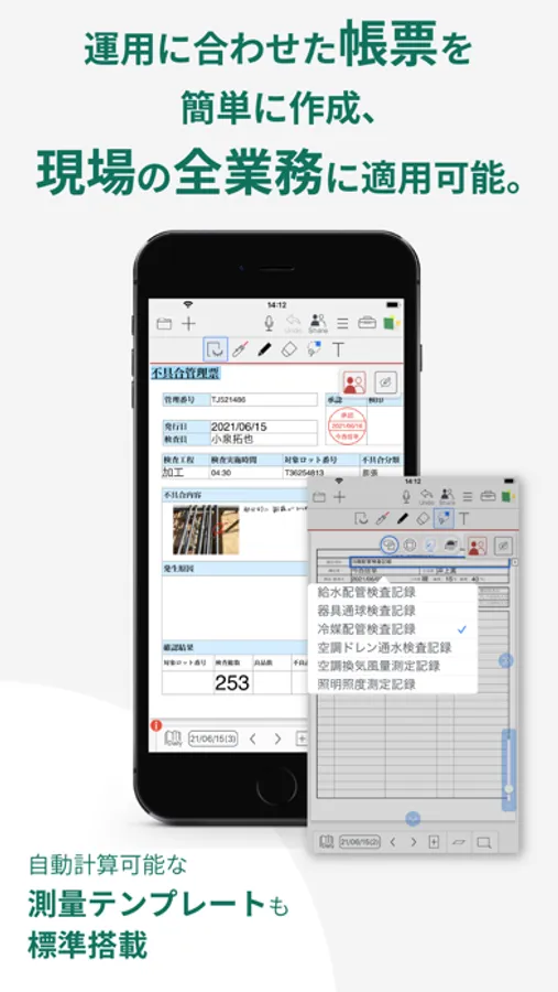 ・紙の帳票を見た目そのまま現場で作成可能、持ち帰り業務を削減