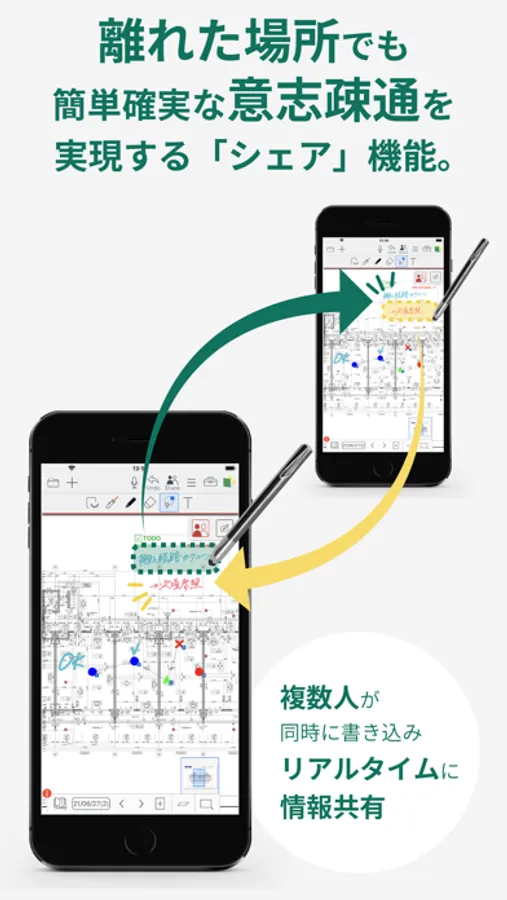 ・現場と事務所など離れた場所でもノートを共有して同時に書き込めます。
