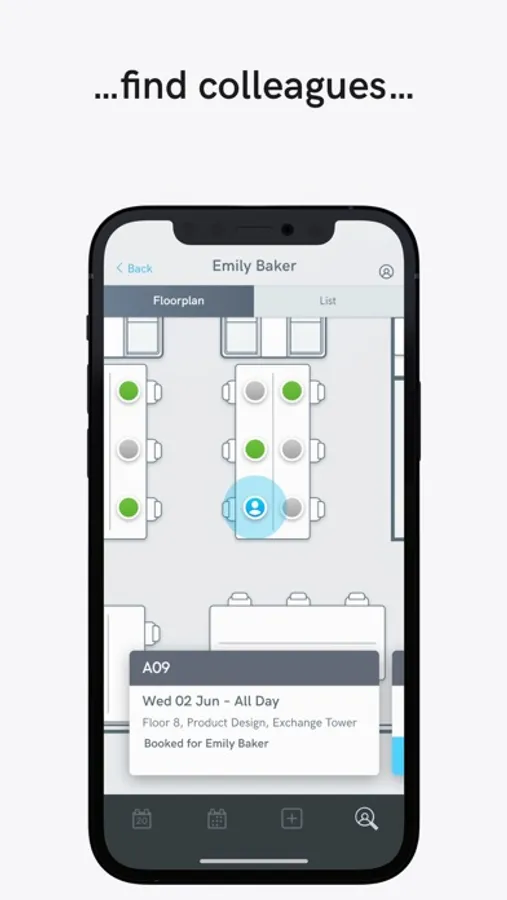A simple to use app that allows you to book spaces in seconds. With a few taps you can book a workstation or a meeting room, along with other areas like parking, lockers, quiet spaces, breakout zones and more. One screen in the palm of your hand keeps you in control of your daily schedule. See all your bookings, find booked workspaces on a floor plan, and make changes or cancellations to bookings as required. It’s never been faster to check in to a workspace, through a simple tap of a button, or automatically through proximity-based check in. When you need to collaborate with a co-worker, Condeco helps make it happen. You can search in the app to find where they’re working, book an available workspace nearby and start collaborating in minutes.