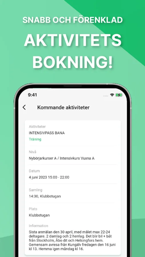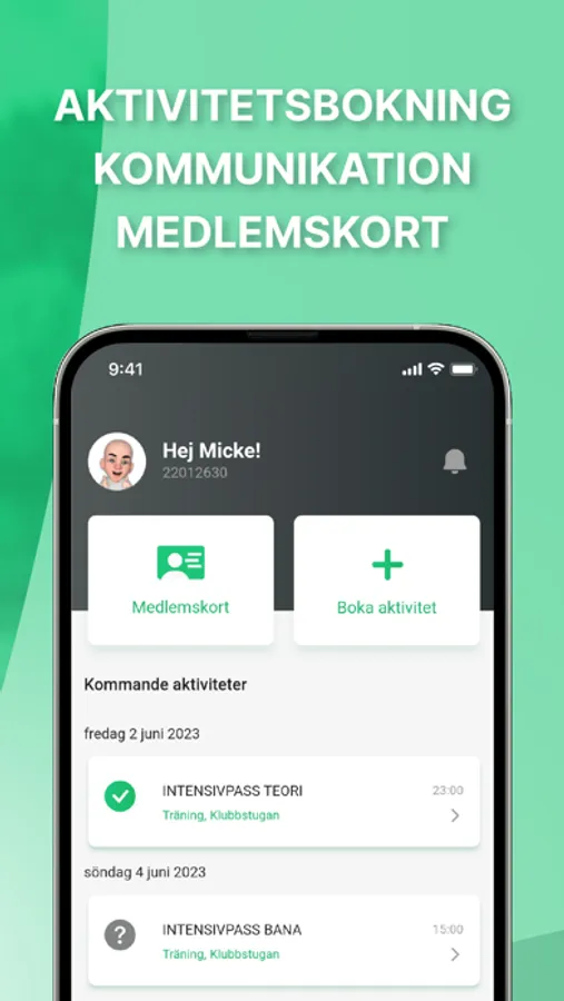 I medlemsappen kan du hålla koll på dina bokningar, fakturor och annat. Få information från din ledare och boka aktivitet!