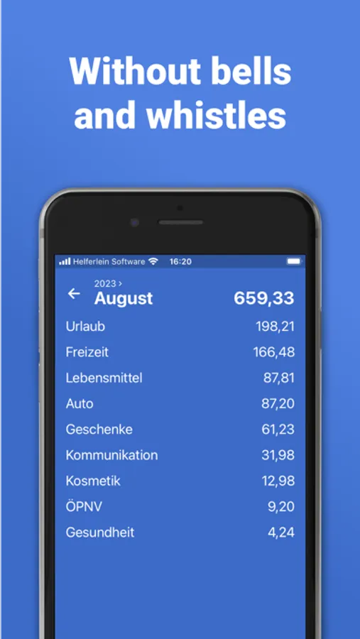 Get more clarity about your money: Expenses shows you your monthly expenses clearly arranged. You can see at a glance where your money is going and increase your awareness of your income and expenses.