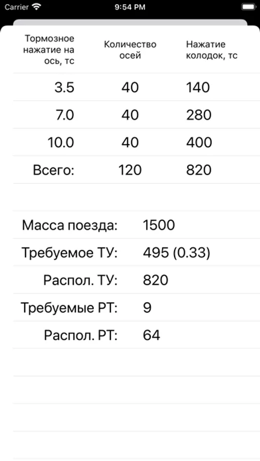 Приложение предлагает выбрать другой локомотив, если требуемое ТУ > располагаемого ТУ.