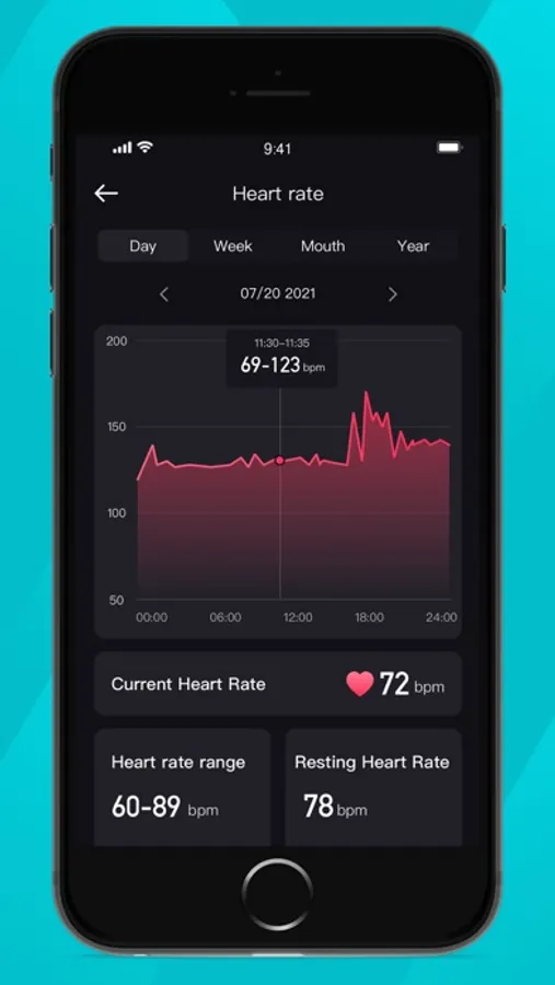 3) Conduct health management: all-day heart rate monitoring, sleep monitoring, blood oxygen saturation detection, women's menstrual cycle reminder, etc.