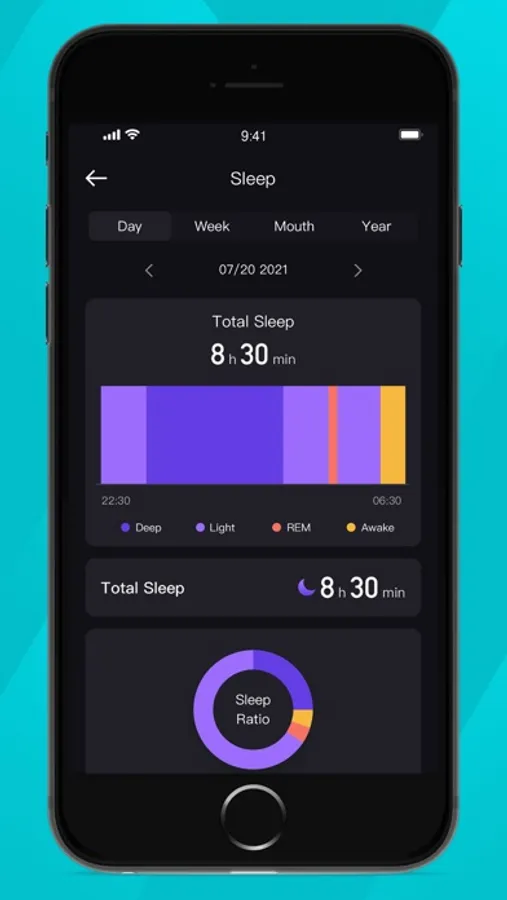 4) Record sleep data: record your daily sleep, inform you of your daily deep sleep time, light sleep time, and number of wakefulnesses, etc., and detect sleep quality to help you sleep better.